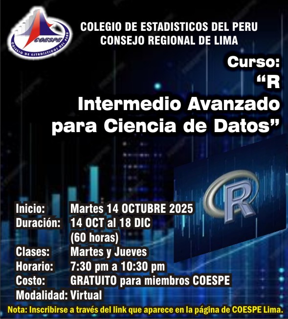Inicio/Comunicados/Curso R Intermedio Avanzado para Ciencia de Datos Comunicados Curso R Intermedio Avanzado para Ciencia de Datos Coespe LimaHace 3 días0 24 Menos de un minuto Registrarse aquí Etiquetasavanzado Curso intermedio R Coespe LimaHace 3 días0 24 Menos de un minuto Facebook X LinkedIn Tumblr Pinterest Reddit VKontakte Compartir por correo electrónico Imprimir